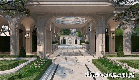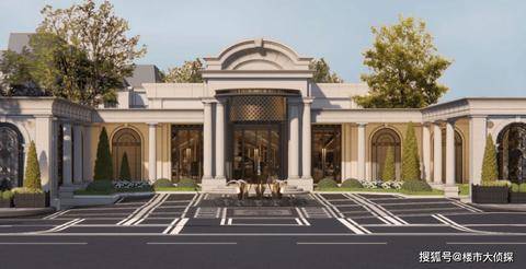 项目采用纯正法式风格,干挂石材外立面,孟莎式屋顶、古典拱心石、对称式构图等元素,尽显法式庄园的仪式感。社区大门打造了近 50 米法式门庭,中央是定制水景,两侧矗立着 5.5 米高的整石立柱,园林设计灵感来源于卢浮宫,以 “横三竖五” 的经典构图,融合法式宫廷的规则轴线与自然园林的浪漫气息。