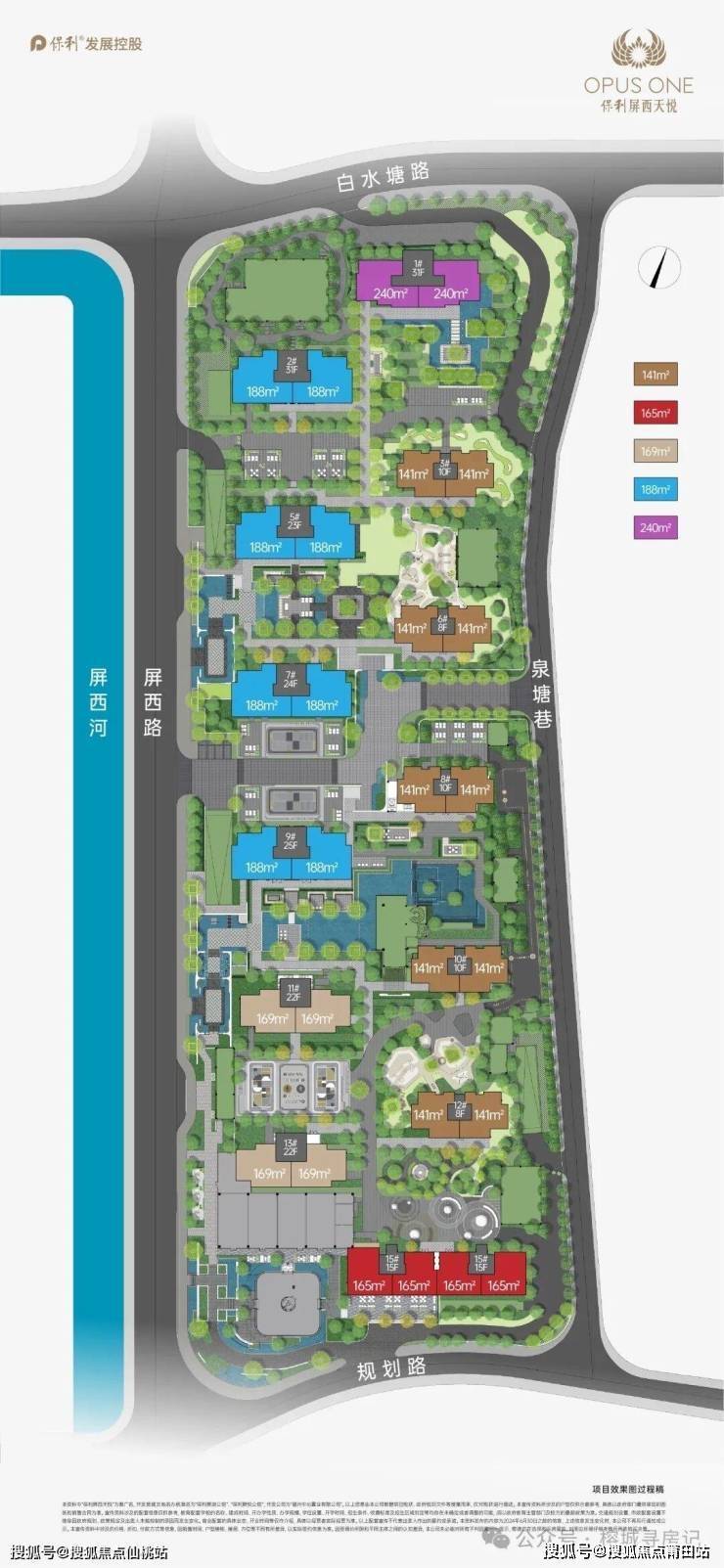 42号地块精装产品:8-31层洋房及高层组成,一楼架空4.5米泛会所,户型由141、165(169)、188、240平四种户型,3#6#8#10#12#号楼141平户型,位于小区东侧,6、12#8层,8、10#10层小洋房。15#号楼165平户型,位于小区南侧,总高15层。11#12#号楼169户型,位于小区西南侧,总高22层。2#5#7#9#号楼188户型,位于小区西北侧,2#31层5、7、9#号楼分别23、24、25层。1#号楼240平户型,楼王位置,位于小区北侧,31层。地块优势:位置不靠主干道,比较安静。1500平下沉式会所,恒温泳池。豪华精装修,省时省力。缺点:高层楼距窄,周围老房子界面一般,出入路较窄,高峰出行相对拥堵。