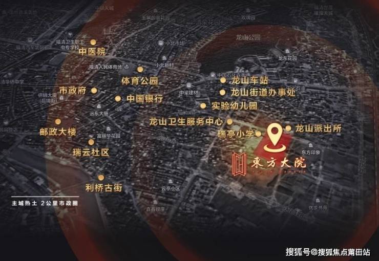 利桥古街,福清市政府,各大银行网点,瑞亭小学,幼儿园,龙山中心小学,中心幼儿园,瑞亭公园,龙山派出所,龙新社区办事处,超市,便利店,诊所,福清中医院,惠和医院,龙山卫生服务中心等,托管,培训班等等。