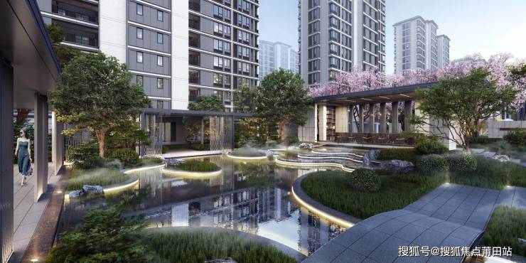 全区社区室外景观面积约62800平方米,其中绿化面积约17900平方米。景观设计上采取“一横两纵十八景 ”的布局,打造人居生活范本。在园区的植物营造上,以大界面生态系统及植物郁闭系统,打造自然沉浸式体验,同时通过植物,打造芳香花境、天然氧吧。