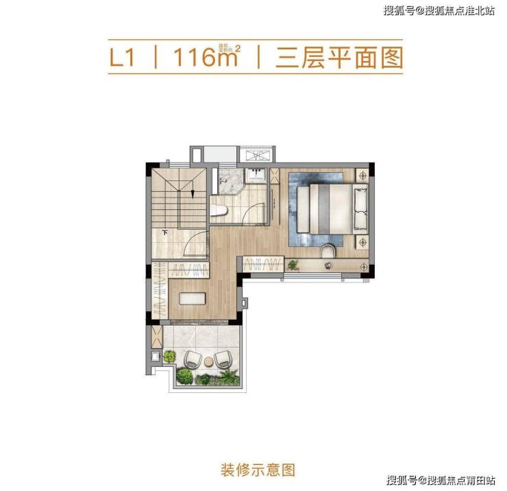 套房式主卧衔顶层星空露台,打造专属私密空间