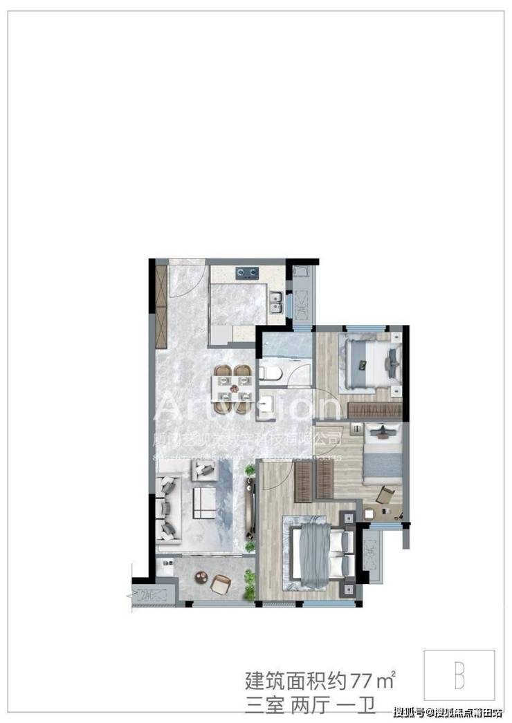 建面约77㎡户型图(装修建议)