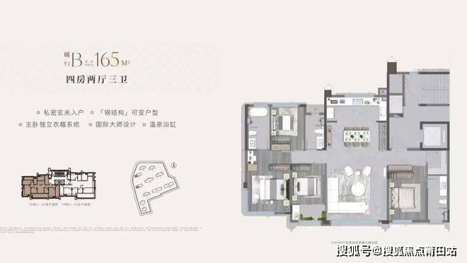 165-189㎡主力户型:LDKB 一体化大方厅,3.3 米层高,270° 寰幕视野;户户 6.1 米挑高错层空中花园,双主卧套房带独立卫浴与衣帽间,空间可灵活拆分,满足多孩、三代同堂居住。