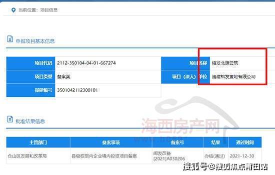 近日,通过福建省投资项目在线审批监管平台查询获悉,“榕发北源云筑”已于2021年12月30日取得县级权限内企业境内投资项目备案,项目代码为2112-350104-04-01-667274;项目(法人)单位为福建榕发置地有限公司; 主管部门仓山区发展和改革局。