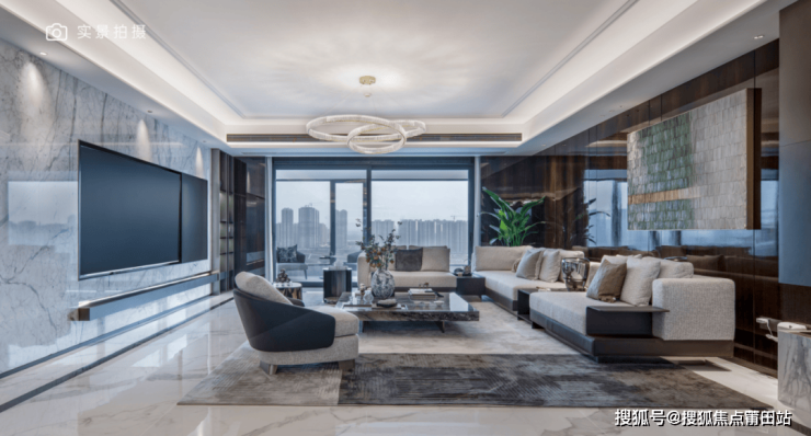 公区面积十分豪横, 餐客厅总面积约82㎡,不仅承载活动、就餐功能,还可以是阅读角、游乐区,甚至能开辟一处茶室、健身房,阔绰感和实用性并存。