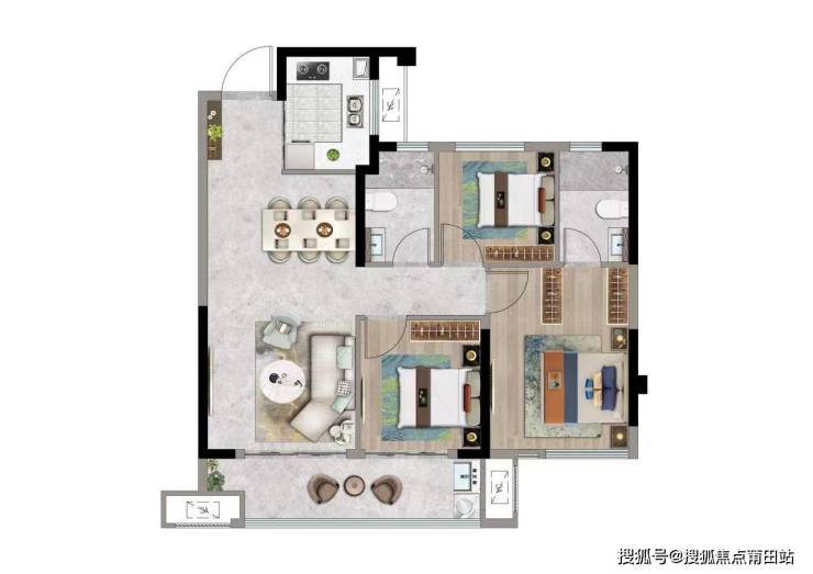 【户型】:建筑面积约89㎡精致三房;119㎡-129㎡奢阔四房