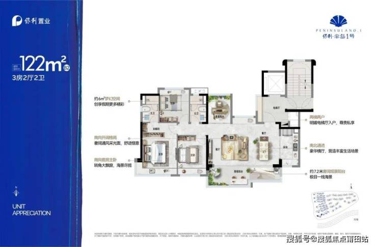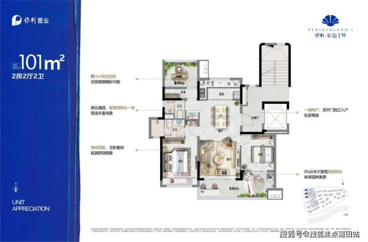 保利·半岛1号,匠心精筑滨海人居,打造惬意奢居亲海住宅:建筑面积约107m2-143m'的双海景板式洋房,配备约9-18m灵动幻变空间,足以容纳个性表达,让你的兴趣与大海交融。