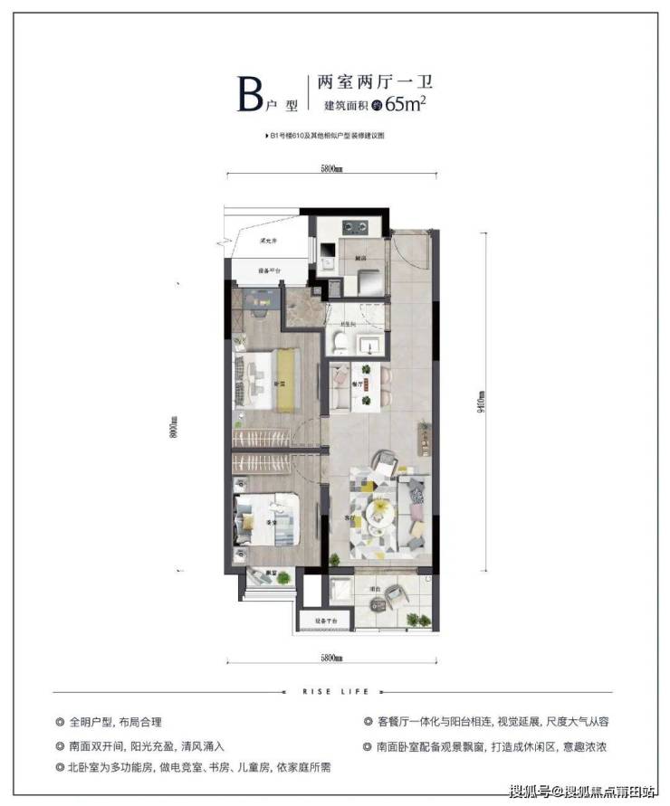 65㎡两房:小户型低总价,LDK 一体化设计,空间利用率高,适合单身、情侣或刚需首置。