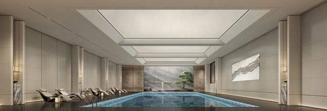 打造业主私享云端约1000㎡酒店级会所,室内恒温泳池会所泳池规格 25m长 *10m 宽,4 泳道开阔水域,恒温循环水,四季畅游;定制独立更衣室与品质休息区,下楼即是度假的开始。配备下沉式沙发区、酒店式吧台、中式山水壁画休憩娱乐场景切换,给予尊崇会所体验。