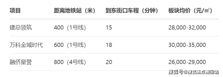 选取同板块万科金域时代、融侨星誉横向对比: