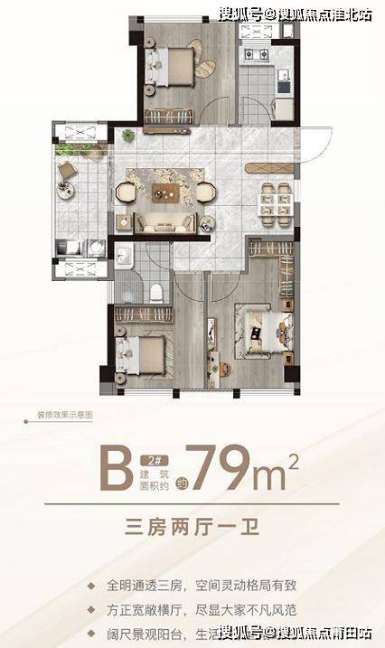 三房两厅一卫|建筑面积约:79㎡
