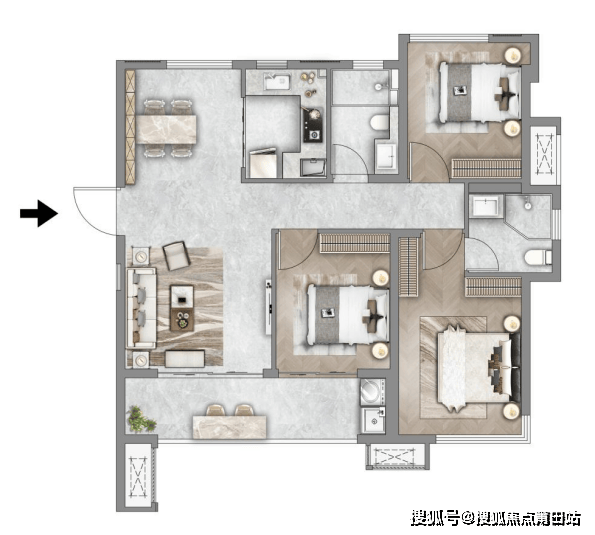 【沁湖】建面约79㎡户型 三房两厅一卫