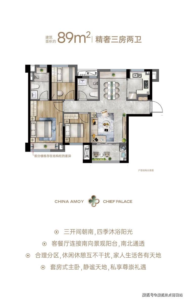 亮点:南北双阳台,主卧套房设计,次卧灵活改造,性价比较同面积段竞品高17%。