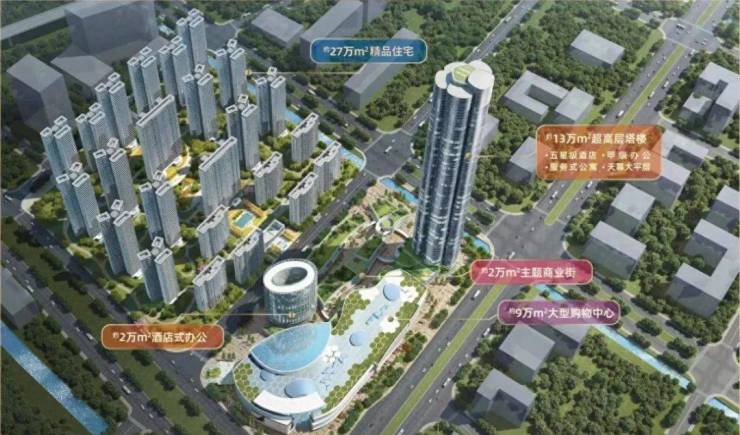 项目规划有由美国JERDE捷得操刀的300米摩天超高层,约27万㎡精品住宅,约9万㎡全业态大型购物中心,约2万㎡立体主题商业街,24h不打烊;约2万㎡酒店式办公,全能定制化空间,同时还规划有五星级酒店及3000㎡艺术中心,将成为未来的城市“新中心”与集吃、喝、玩、乐、购为一体的繁华集散地。