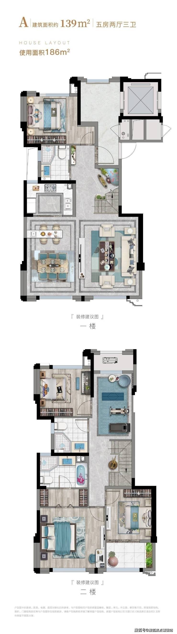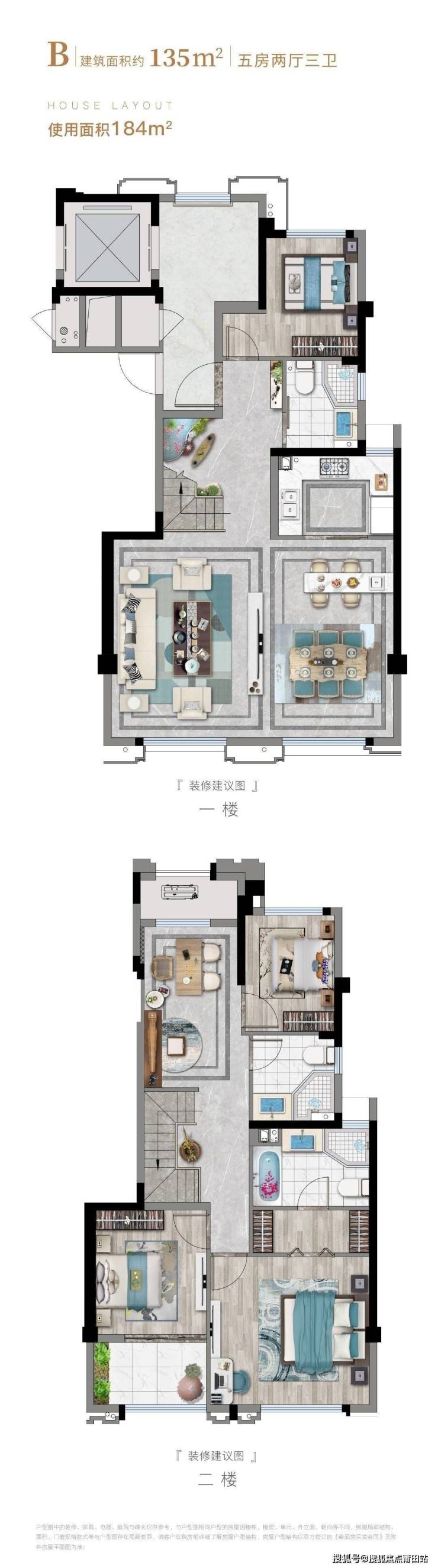 多功能大五房:精研全龄段生活需求,多功能分区,打造各具特色的私密生活空间;
