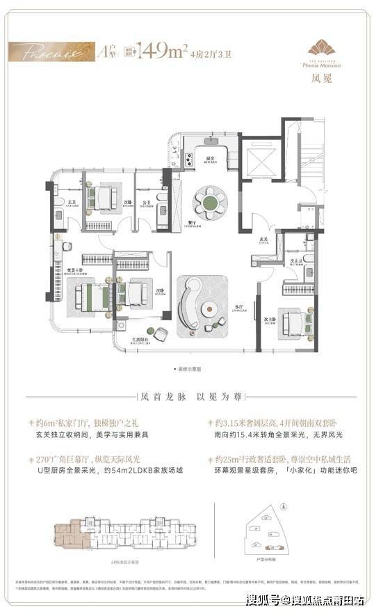 建面约149㎡「凤冕」户型:功能主义的极致优化