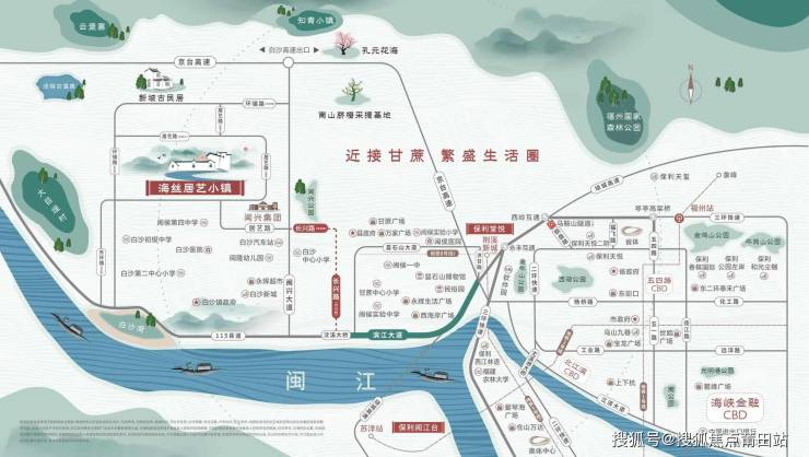 海丝时尚居艺小镇的交通网络发达,拥有滨江大道、绕城高速等多条主干道,以及在建的地铁5号线,这些交通设施将大大缩短小镇与福州市区的距离,提高居民的出行便利性。此外,小镇近接鼓楼西,可以轻松享受到市中心的商业、文化、教育等优质资源,这将进一步提升小镇的居住吸引力和生活品质。