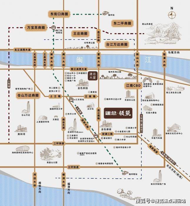 建总领筑位于仓山老城核心区,隶属江南CBD规划范围,距离二环快速路仅500米,兼具老城便利与新城发展潜力。根据2025年福州国土空间规划,江南CBD定位为“金融+科创”双引擎,目前已落地建总大厦、招商银行福州分行等企业总部。