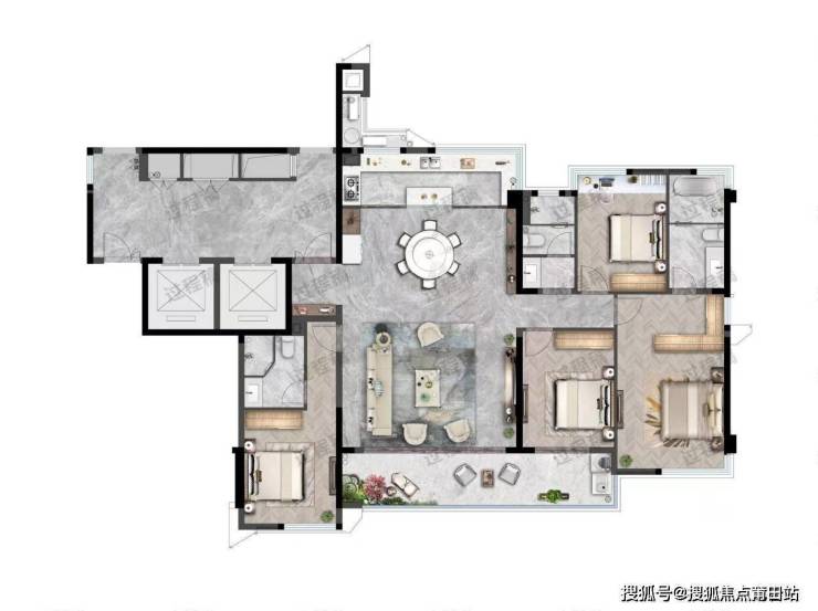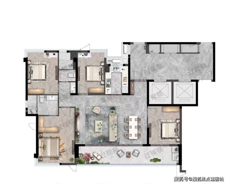 总共规划3栋住宅和一栋商业,住宅户型149-187-209㎡四房-五房大平层。