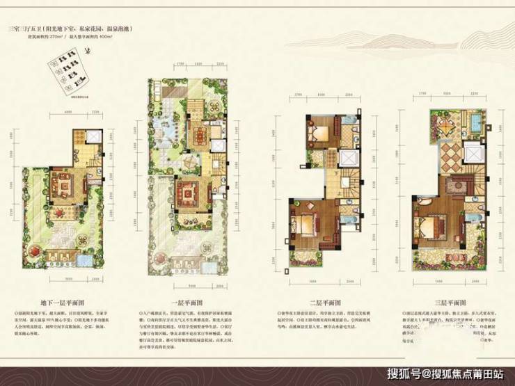 温泉别墅:220-350㎡联排及类独栋,带庭院、车位及温泉入院,面向高端度假及改善客群。