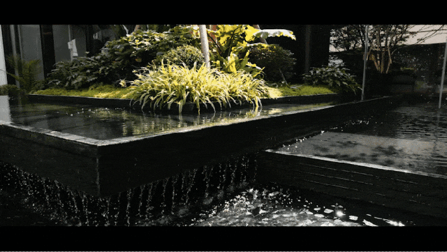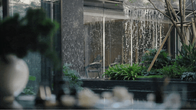 从景观美学上来说,水增加了园林的灵动和层次,水光交错,建筑倒影,又形成了新的风景。如三层叠水的设计,巧妙地在垂直方向上创造出景观的高差,形成了层层叠落的观水平台,赋予中庭以灵动的生机,不仅是视觉上的享受,更是心灵上的触动。