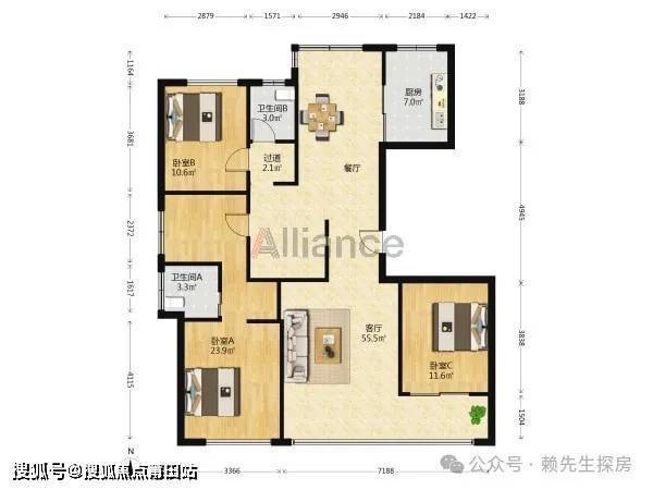 ◆户型:3房2厅2卫1阳台(独梯独户)