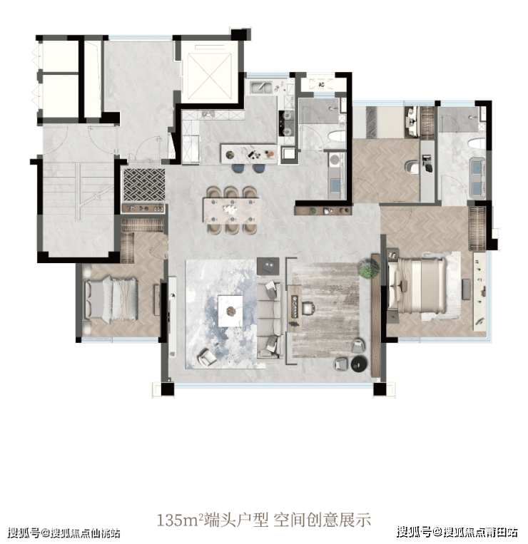 135㎡户型,瞄准的是市面上160平的大平层。