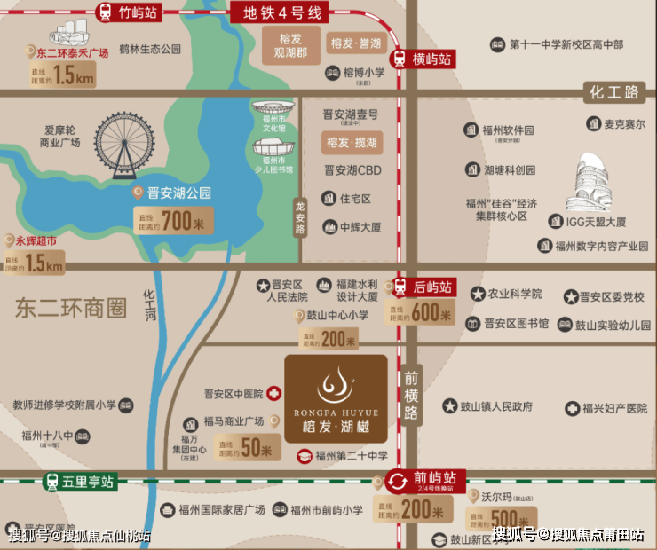 1 距离晋安湖的直线距离只有约700米。