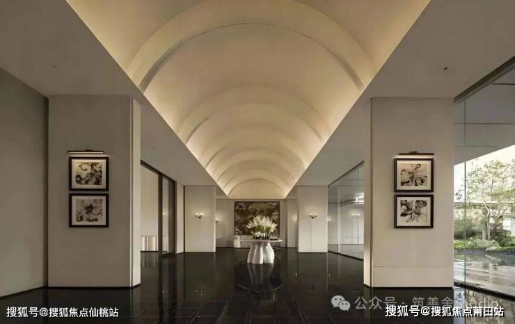 室内空间设计以现代笔法,将坊巷的礼序、茉莉的温润、海洋的开放与建筑的光影巧妙融合,注入这片土地,精心营造一个现代典雅的国际住区。南洋回廊的拱门元素,在中寰悦府的设计中被巧妙运用,成为贯穿空间的精神主轴。在接待大堂,高挑的空间与对称的拱形序列相得益彰,共同营造出恢弘典雅的场域气度,让归家的第一眼便充满仪式感与尊贵感。设计的匠心体现在细节的精雕细琢上,柔和的弧形切角与精工匠造的凹凸比例造型,在光影的映衬下,形成丰富细腻的视觉层次。这不仅是对南洋建筑优美弧线的致敬,更是以现代工艺还原那份慵懒、温润的生活意境。