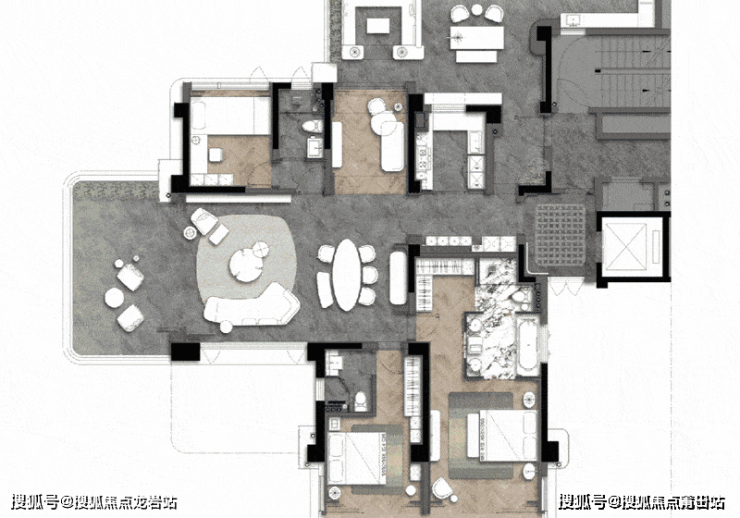 2-观景花园露台:连接客厅,延伸社交与生活,满足先生、太太的私人聚会,会客洽谈的需求,容纳父母颐养、莳花弄草的小爱好;