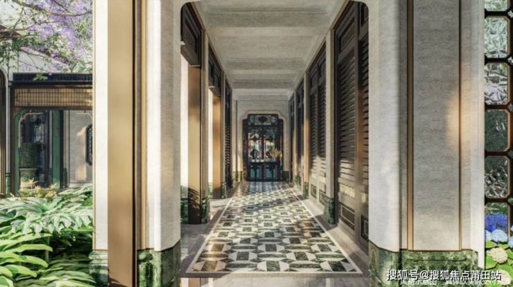 建筑成为艺术容器:臻选巴西百达翡绿、意大利绿山水等近50种全球奢石,历经20道匠心工序,化身伞柱、景墙与拼花地板。