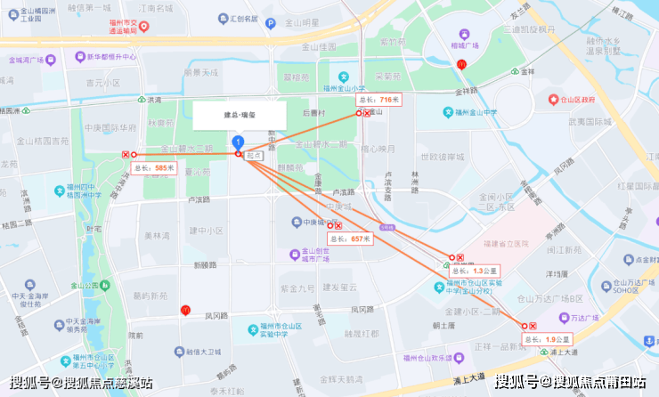 这片区域配套名字都带“金山”——金山地铁站(2&5号线换乘)、金山公园、金山省立医院、金山万科里、金山小学、金山中学... 真正的金山核心配套,都在它2公里范围内!比如直线距离: