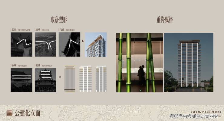 以竖向竹纹铝板与鎏金腰线,构建公建化立面