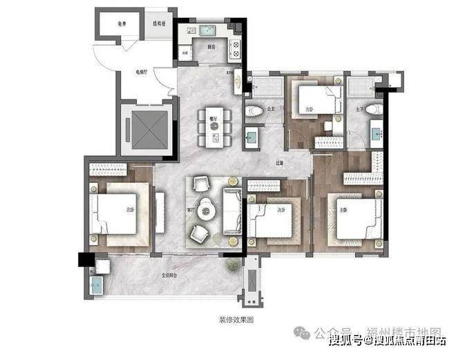114平四房产品位于中间户,一梯一户,公摊23%,取证均价29472元/㎡,楼层差200元/平;预计销售价为2.6万元/㎡,总价290-310万/套。
