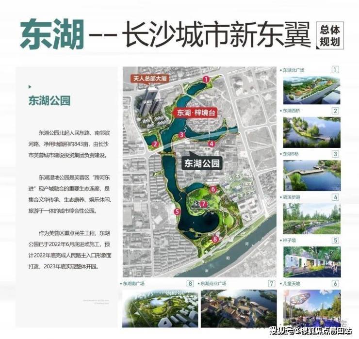 东湖公园:净用地面积约843亩,是芙蓉区“跨河东进”实现产城融合的重要生态连廊,未来比肩洋湖湿地公园,2023年底实现整体开园。