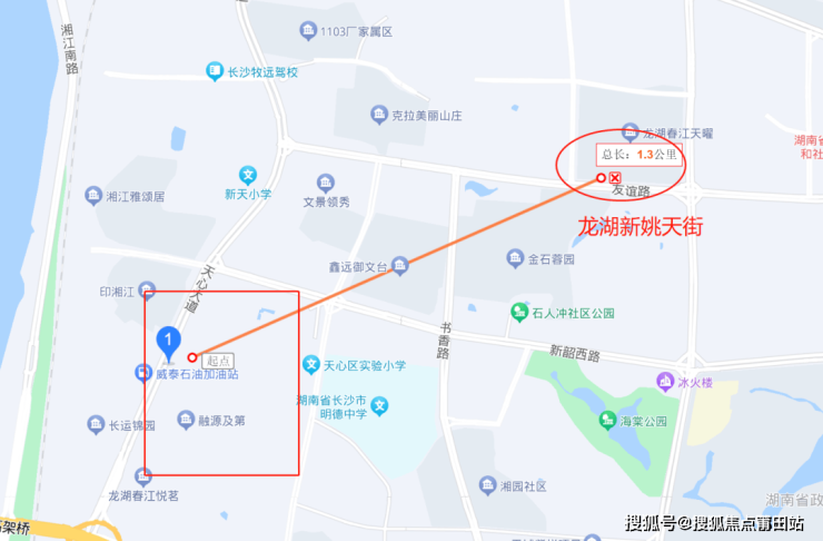 东侧海棠公园,西侧一路之隔紧临天心滨江公园