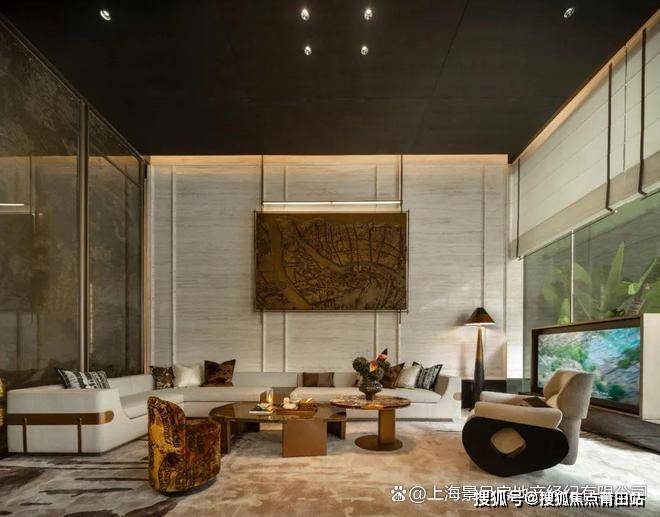 从门口的水系景观开始,大块的花岗岩石材、成吨玉曼米黄奢石整石切割的喷泉水景、从大堂到下沉式会所,更是使用了从墨染流云奢石、意大利超白洞奢石、波斯白玉奢石、维多利亚绿奢石、太古黑金石等众多价格昂贵的进口奢石。
