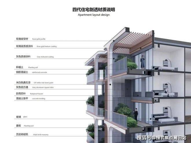 设计回归传统人居理念,利用270°环绕景观打造错层全景露台,奇偶层露台错位,形成通高院落及多维度的城市上空森野谧境。露台通过使用弧形精工化建筑线条及通透天幕玻璃立面,增加建筑的流畅感和未来感,打造奥体片区独特IP标杆形象。
