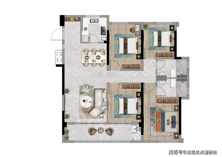 119-129㎡四房:奢阔尺度,宽厅搭配全景阳台,改善客群首选。