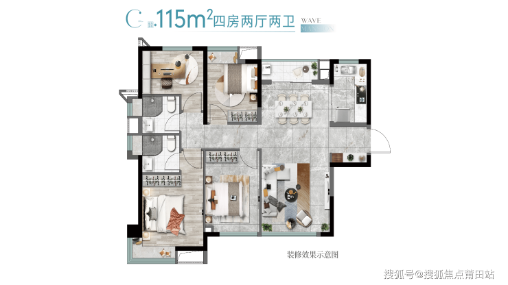 115㎡四房两卫:总价260万起,南北通透设计,适配改善型家庭。