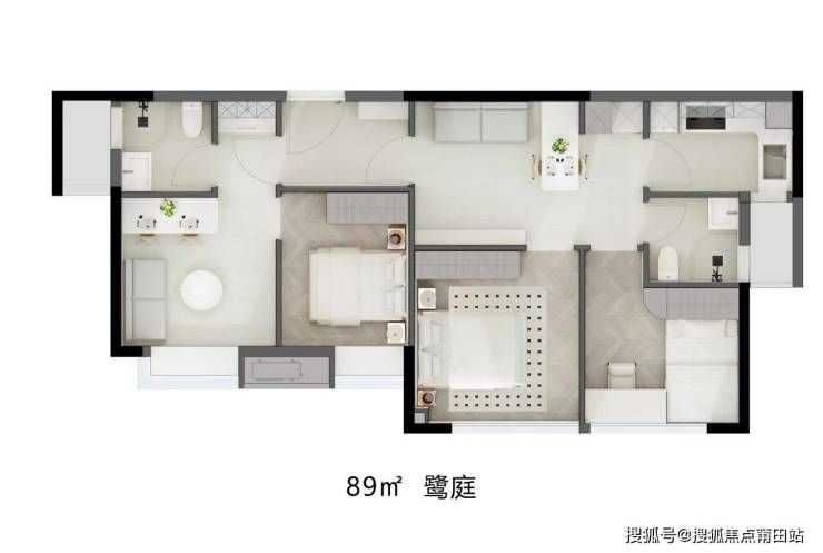 推荐户型:89㎡三房两卫(总价260万起)。
