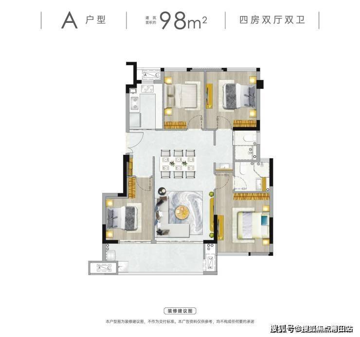 °灵动·四房户型:97-110㎡的成长型户型,全明全通透方正格局,可变四房,满足成长型家庭的各种可能,从二人世界到三口之家,从三胎时代再到三代同堂,都可以兼顾到,为人居提供全新的解决方案。