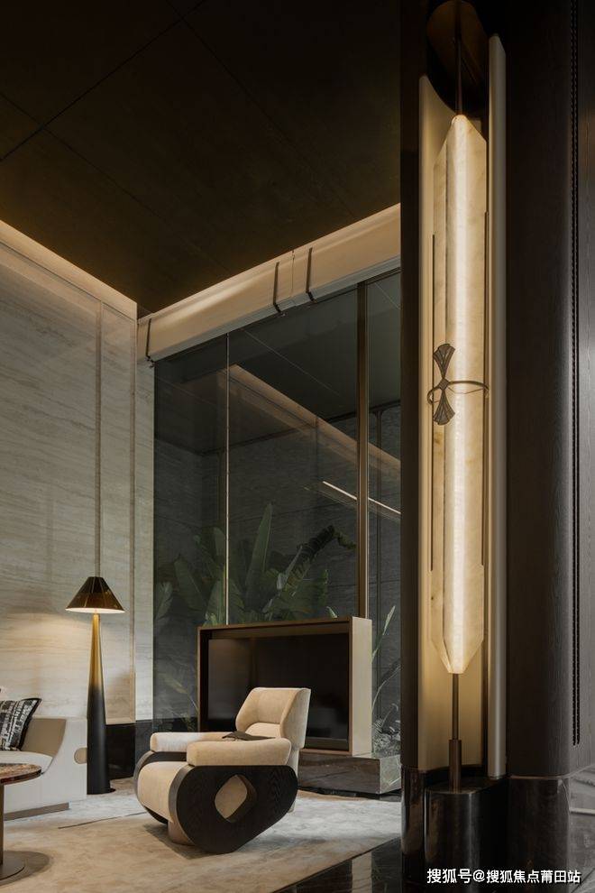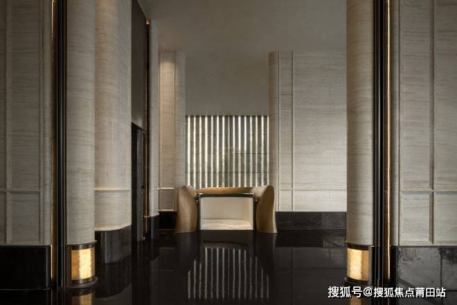 步入前厅接待区,首先映入眼帘的是一座艺术大堂,以极简的设计语言诠释了奢华与优雅。空间顶部以福州传统建筑的“弧形”元素为灵感,构筑充满律动和生命力的曲线造型,柔和的曲线与硬朗的结构形成鲜明的对比,交错的光影营造出层次感,展现出了空间的韵律和自然的和谐美。