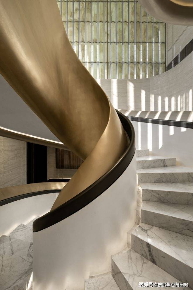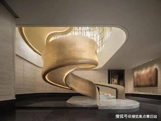 贯穿各层的艺术楼梯,以其流畅的曲线设计展现出韵律之美。金属漆扶手闪烁着低调的光芒,与水墨奢石地面相映成趣,营造出一种静谧的奢华感。