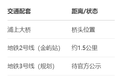 地铁覆盖:现有地铁2号线(金屿站,距离约1.5公里),未来3号线(规划中)可能进一步提升通达性。