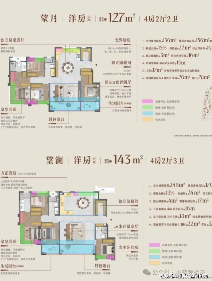 所有得房率均接近100%以上,甚至负公摊。项目103-116-127-143全4房产品,得房率均超约100%,