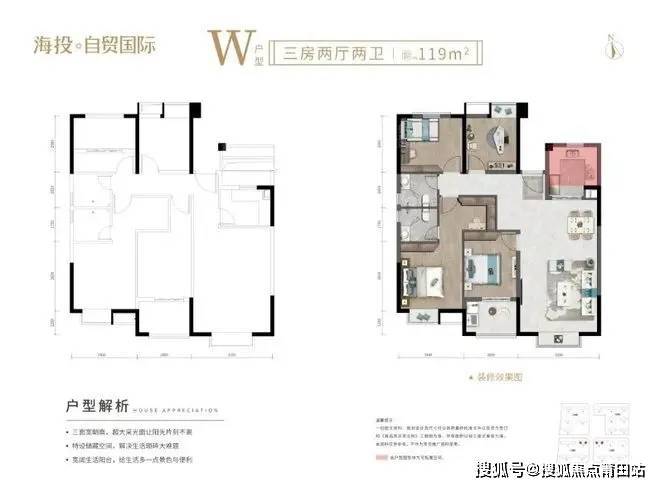 3室2厅2卫建面:119㎡