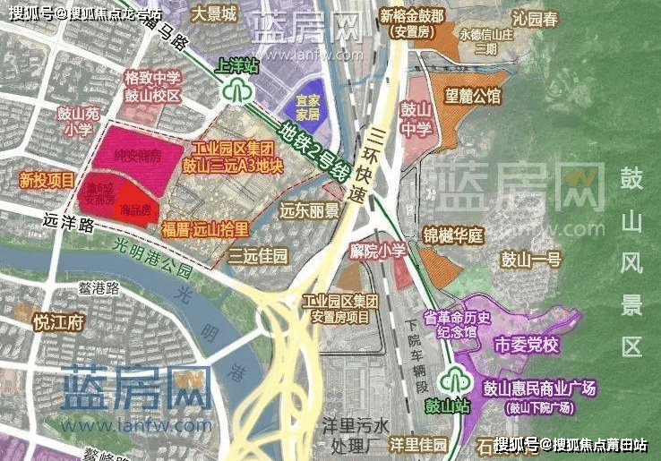 三远片区位于晋安东区,是福州市近期启动的连片旧屋区改造重点项目。片区交通配套成熟,北侧是地铁2号线上洋站,第三轮地铁8号线拟从片区内部穿过并设置三远站。项目南侧是光明港及光明港公园,具有良好的面河景观,周边生活配套有宜家商业综合体、格致中学鼓山校区、鼓山苑小学等。