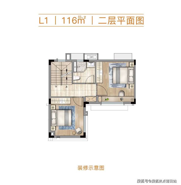 二层双卧室设计,不论是二胎家庭还是三代同堂
