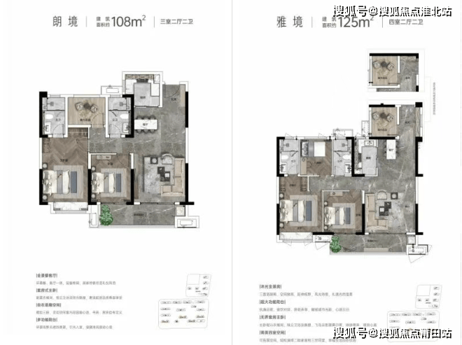 建面约 125㎡四房两厅两卫:功能性强,可满足家庭全生命周期的需求,兼顾居住舒适度和生活私密性。